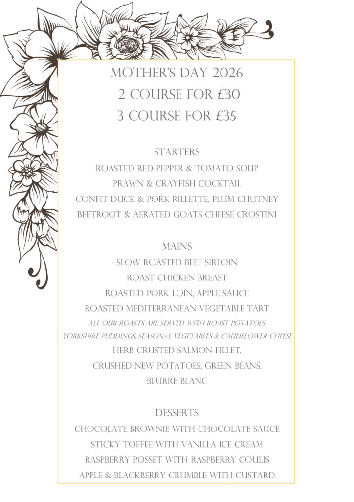 Our Mother’s Day menu will be served on Sunday 15th March, 12pm until 6pm, please ensure you book.